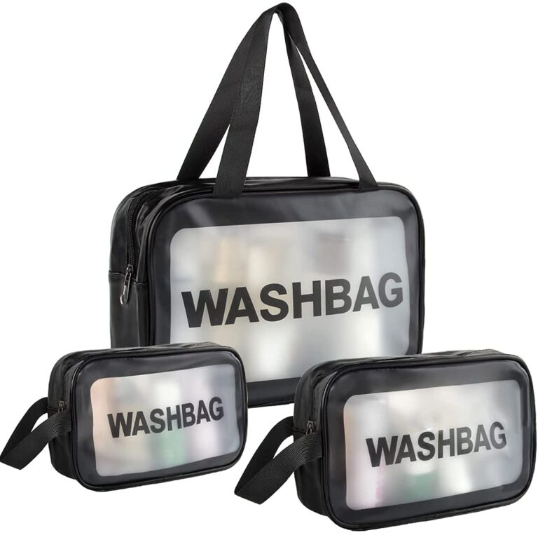 Clear Toiletry Bag, Wash Make Up Bag PVC Waterproof Zippered Cosmetic Bag, Portable Carry Pouch for Women Men (Set of 3 Bag Black)