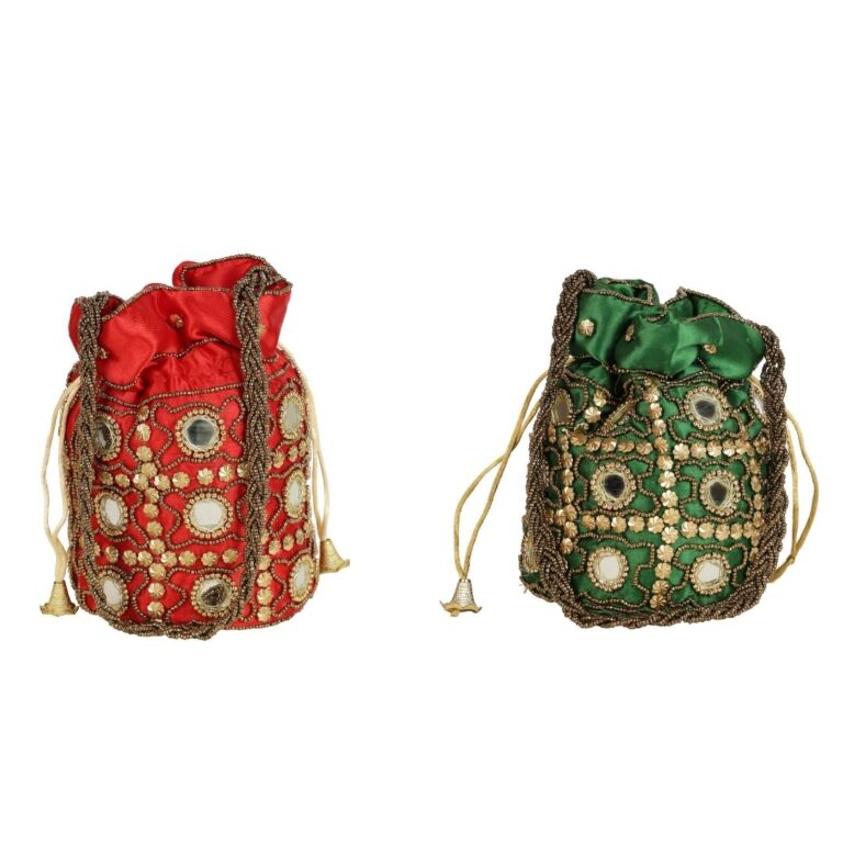 Combo – Designer Embroidered Potli Bag – Red & Green