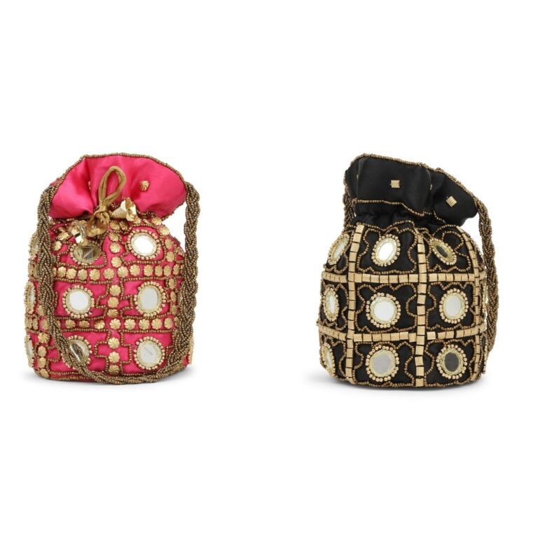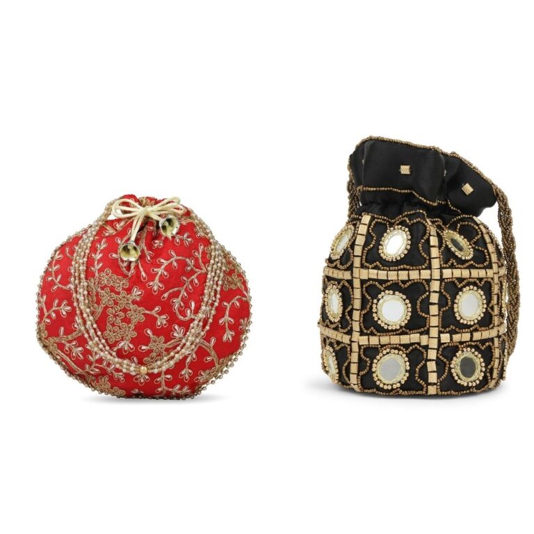 Combo – Designer Embroidered Potli Bag – Red & Black