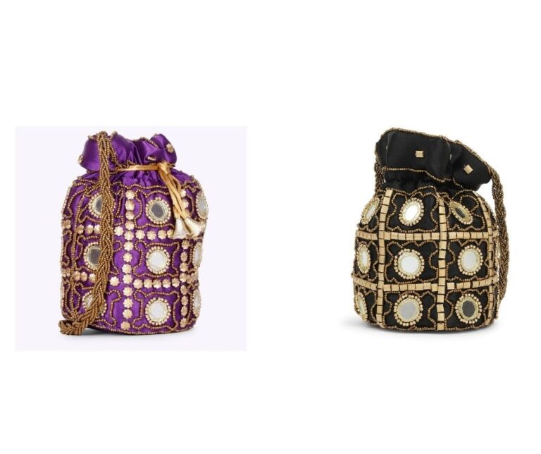 Combo – Designer Embroidered Potli Bag – Purple & Black