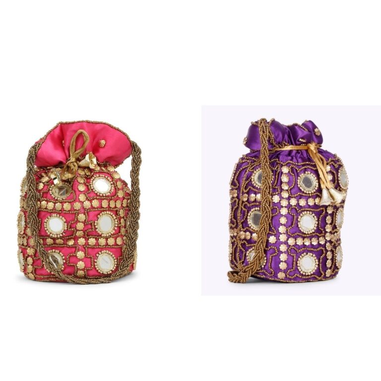 Combo – Designer Embroidered Potli Bag – Red & Pink