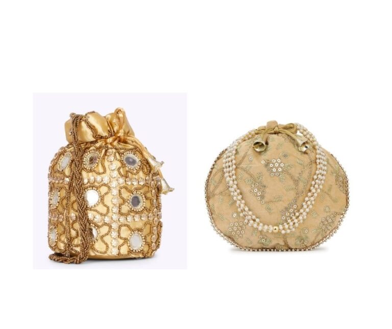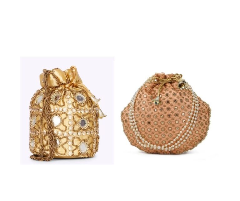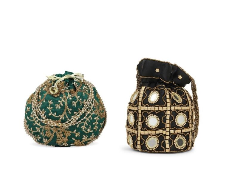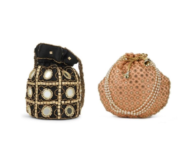 Combo – Designer Embroidered Potli Bag – Yellow & White
