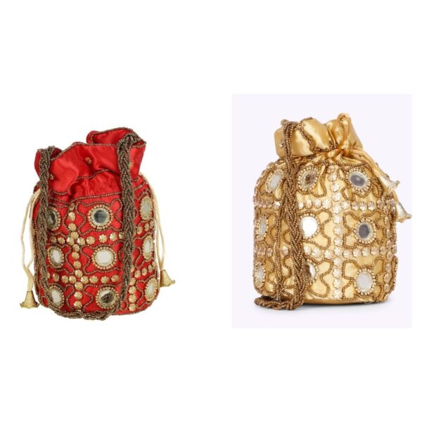 Combo – Designer Embroidered Potli Bag – Red & Gold