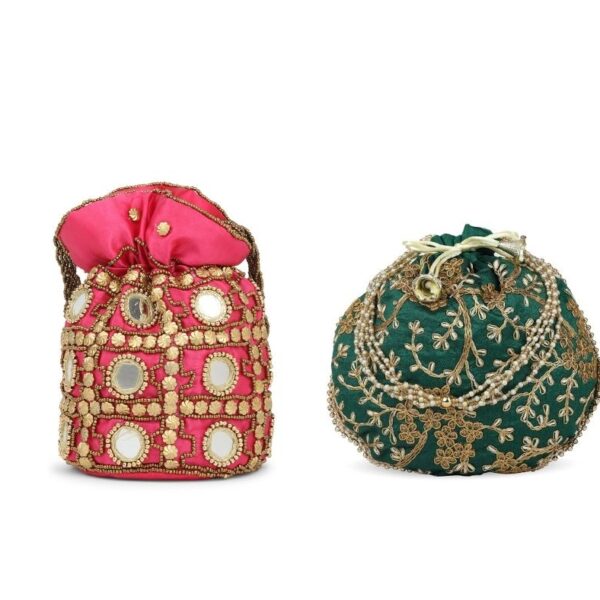 Combo – Designer Embroidered Potli Bag – Red & Green