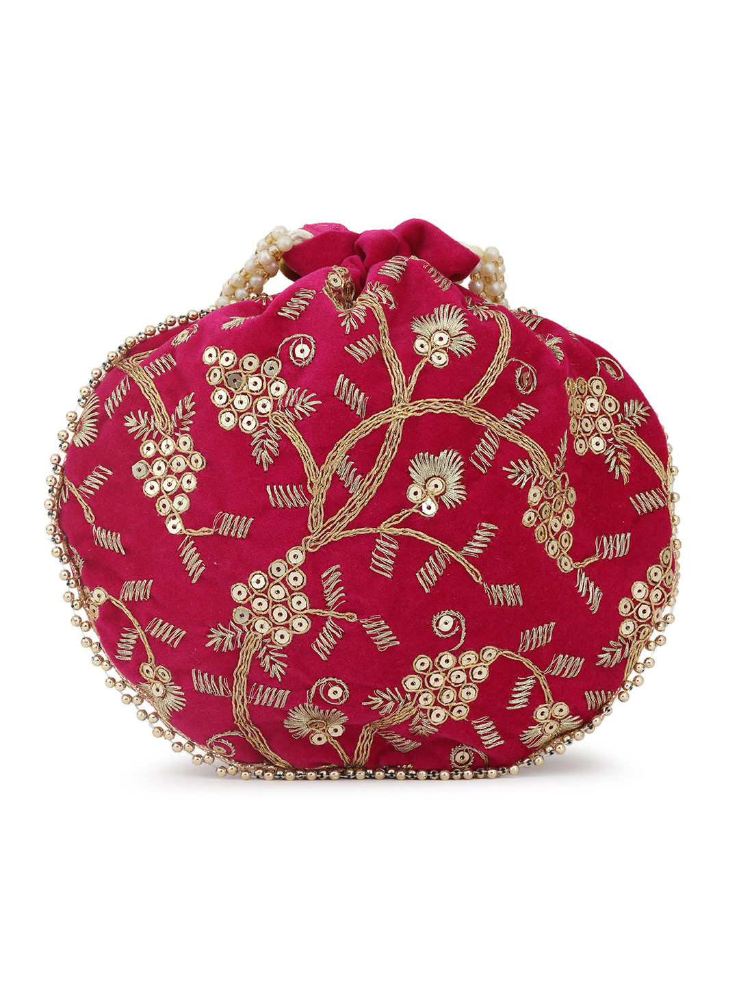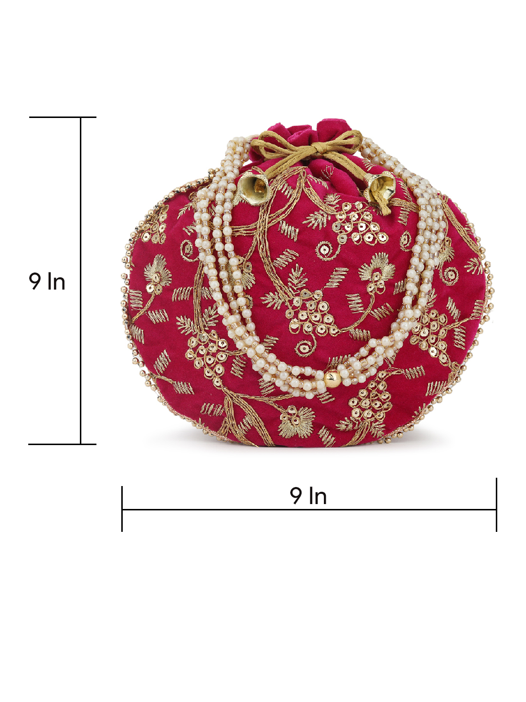 Combo – Designer Embroidered Potli Bag – Red & Pink