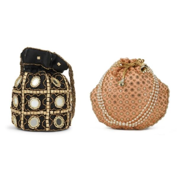 Be the first to review “Combo of Beige & Black Color Designer Embroidered Potli Bag”