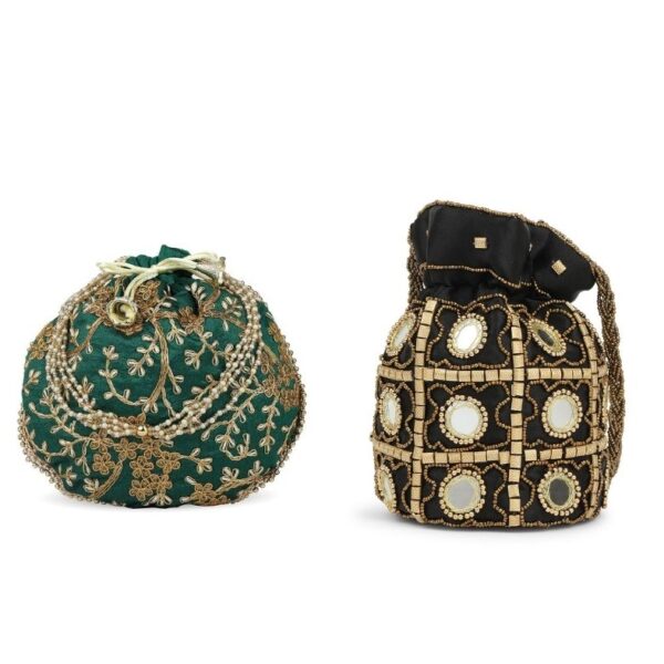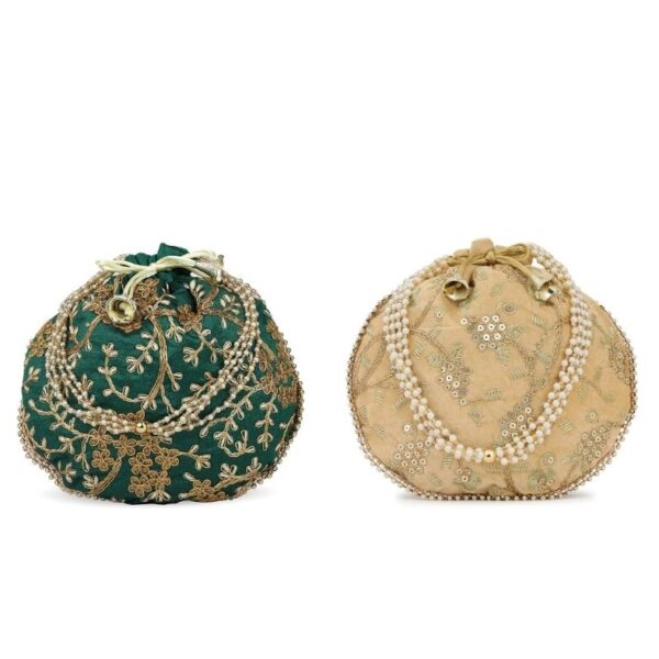 Be the first to review “Combo of Beige & Green Color Designer Embroidered Potli Bag” Cancel reply