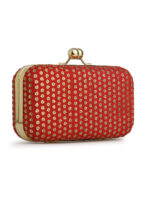 Combo Of Boho Bag And Red & Gold Embroidered Box Clutches For Girls and womens