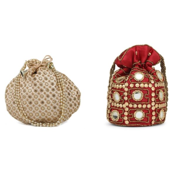 Be the first to review “Combo of Golden & Beige Designer Embroidered Potli Bag” Cancel reply