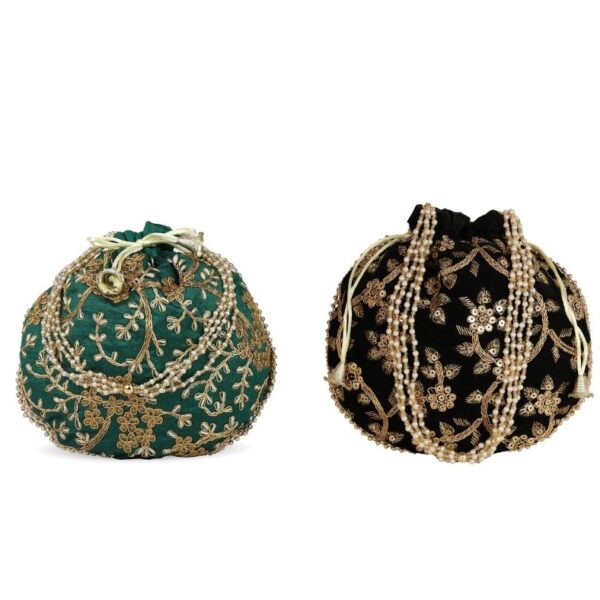 Be the first to review “Combo of White & Green Color Designer Embroidered Potli Bag” Cancel reply