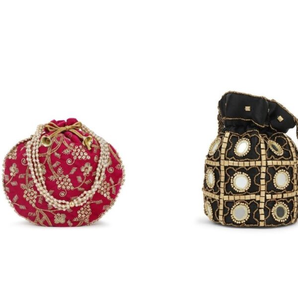 This product is a combo of tow Embellished potli bags having wrist loop 1 main compartment each with drawstring closure. Size & Fit Size of each potli bag : 9 x 9 x 3 Inch (Length x Width x Depth ) Material & Care Fabric Wipe with clean, dry cloth