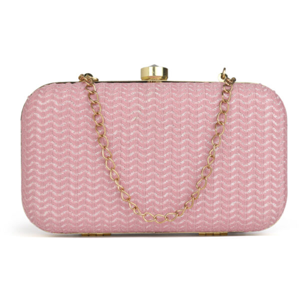 Peachembroidered box clutches Has shoulder strap, 1 main compartment with twist closure